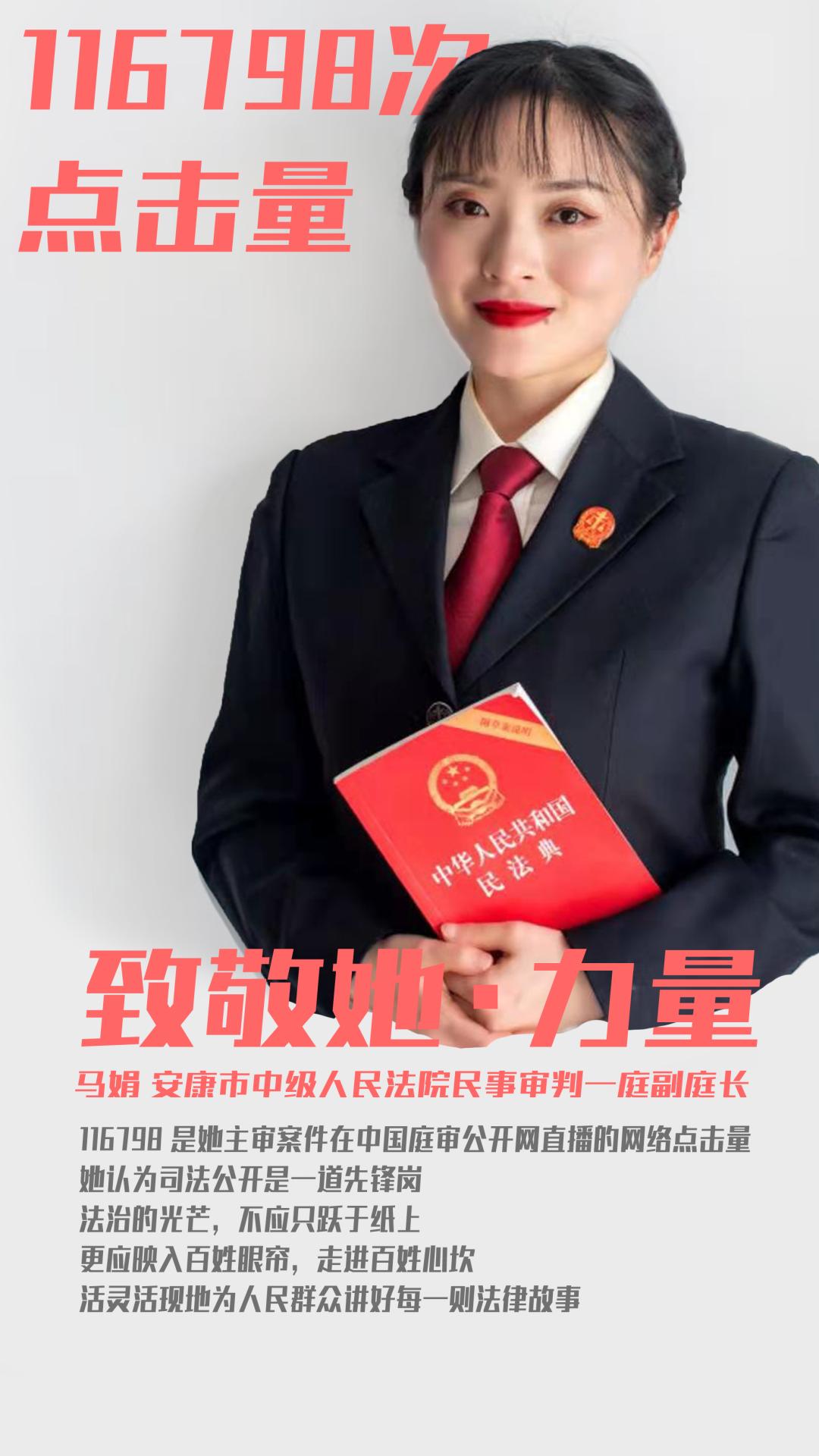 2017年她把目光瞄准了中国庭审直播公开网,成了安康法院庭审直播第一人,为了让每一次庭审变成一堂普法公开课,她利用业余时间认真“备课”,从办案手记到庭审提纲,务求每个环节和程序都规范到位,从案件事实到法律关系,她用通俗易懂的大白话掰开了、揉碎了解释给当事人听。就这样一期一期坚持下去,她的庭审直播点击量一路攀升,仅2020年就达到了116798次,直播案件数连续三年位居全市法院榜首,看过她直播的当事人到法院来纷纷要求由她办理自己的案子,她还真成了“网红法官”。