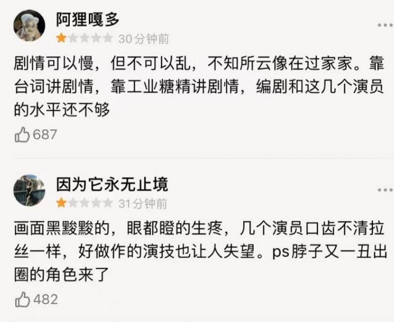 12月1日,原定8点上线的《风起洛阳》并未准时播出,官微表示是因为平台方面的技术问题剧集延迟上线,但神奇的是,首播评论却在平台上按时“上线”了。正片还没播,神通广大的某平台网友已经仿佛看完六集胸有成竹打起一星,有批评导演叙事镜头的、吐槽演员演技辣眼睛的,说得有模有样有理有据。