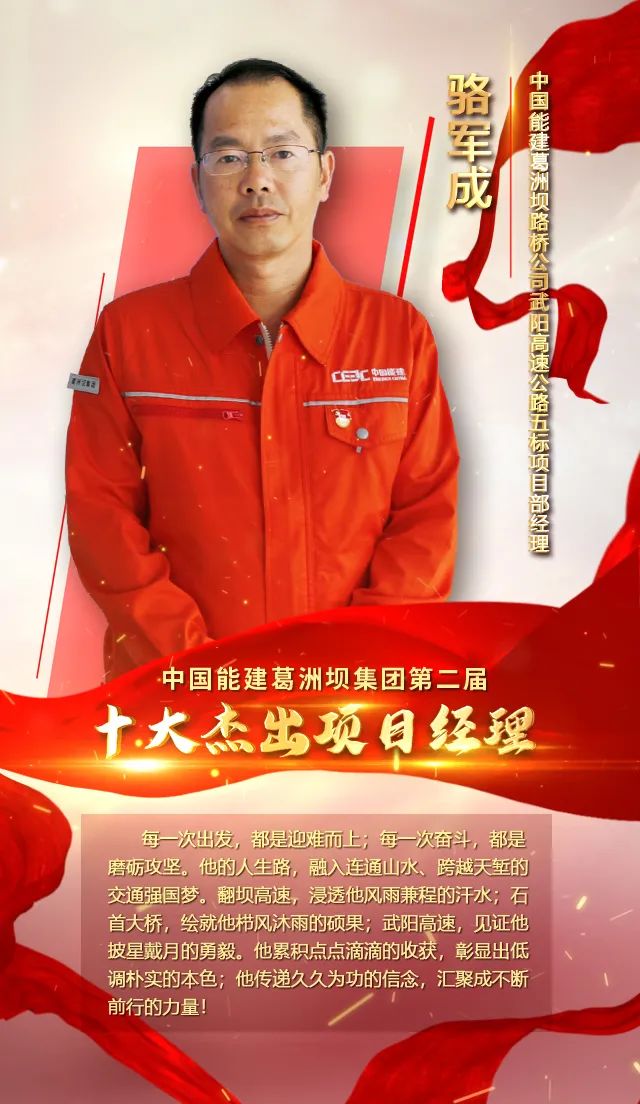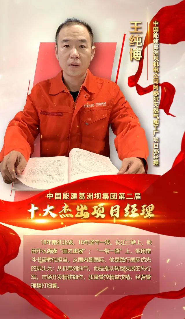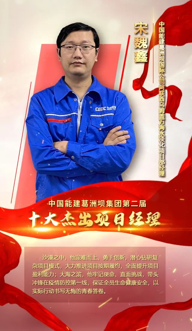 获奖感言:我毕业即有幸投身中国能建葛洲坝国际事业,七年来,我一步一个脚印,从印度尼西亚到阿联酋,从技术员成长为项目经理。是公司为我提供了实现人生价值的广阔舞台。我将牢记初心使命,立足新起点,展现新作为,在中东这片热土树立中资企业新标杆。
