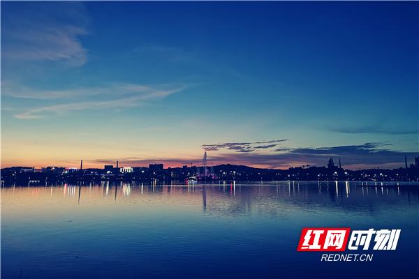 资兴东江湾景区位于资兴市主城区鲤鱼江水电站和小东江水电站之间,总面积5.7平方公里。傍晚,绚丽的晚霞与两岸璀璨的灯火将东江湾点缀得如诗如画。