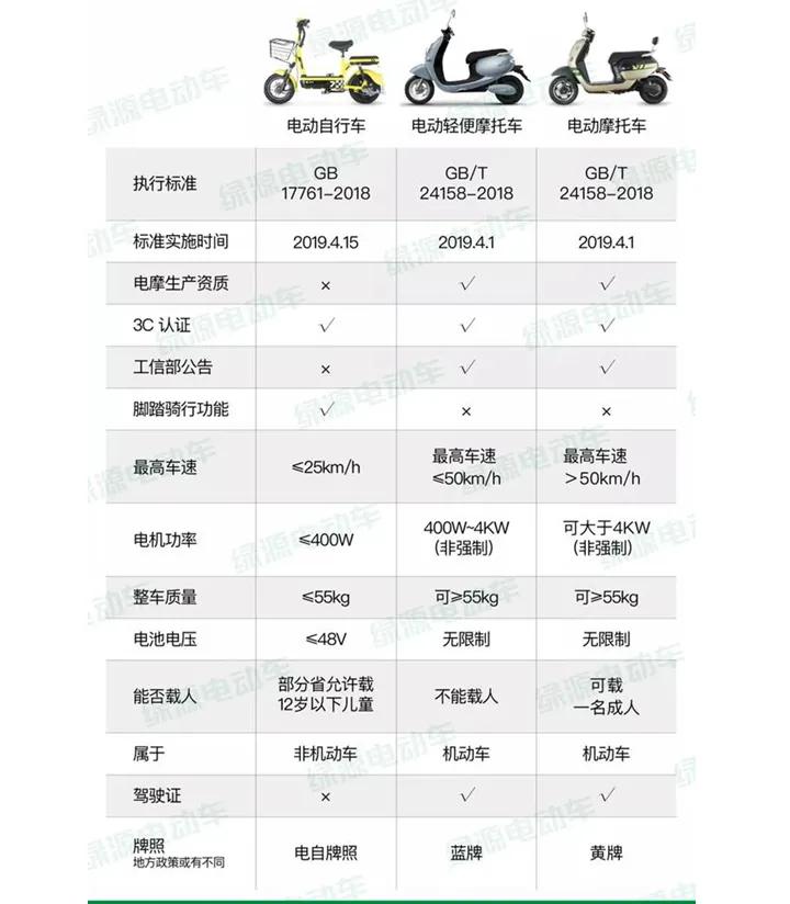 附:电动自行车、电动轻便摩托车、电动摩托车的区别