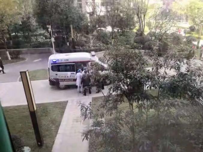 现场市民拍摄的视频显示,事发现场已被红白相间且标有“注意安全”字样的警戒线暂时围住,当事人龙先生正用纸巾擦拭自己额头上的出血部位,地上零星散落着血滴与用过的卫生纸。所幸龙先生的伤不是特别严重,他与老婆拨打了报警电话与急救电话。十多分钟后,梅溪湖派出所民警与急救人员都到了现场。龙先生坐上了救护车,被送往医院检查并作进一步治疗,伤情并无大碍。梅溪湖派出所民警来到现场后,走访了现场居民并联系物业调取了事发当时附近的监控视频。