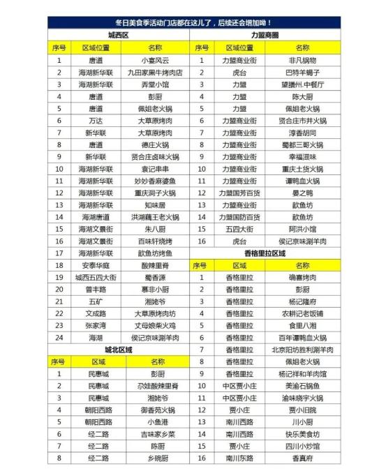 无论是香气浓郁的柴火鸡、热气腾腾的火锅、还是来自全国的各大菜系和经典的本地特色美食……本届美食季,将在西宁力盟、万达、唐道637、新华联、城东吾悦广场、香格里拉等核心商圈的40余家当红火锅店和100余家本地特色餐饮店,带你一起享受美食美酒带来的热腾与愉悦,让这个冬季暖胃,更暖心!