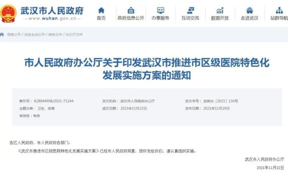 近日,武汉市政府办公厅印发《武汉市推进市区级医院特色化发展实施方案》(下文简称《方案》),要求公立医院要坚持公益导向,高质量推进市区级医院特色化发展,力争到2025年,全市建成一批全国排名靠前、综合实力强、专科特色鲜明、品牌效应凸显的高水平、现代化医院。