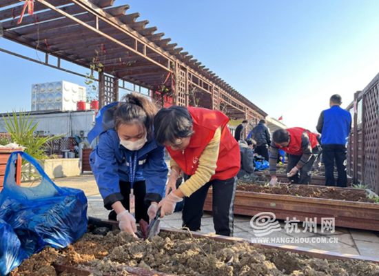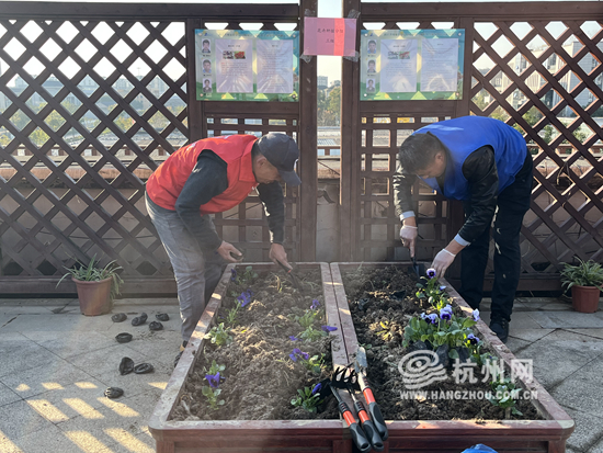 12月2日,杭州西湖区文新街道残疾人之家“园艺治疗示范基地”揭牌开园。辖区残障康复员和工作人员一起,在屋顶花园种下了一棵棵花草。