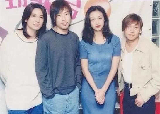 由左到右:周星驰、吴倩莲 、刘德华、周润发那时的吴倩莲,风头无两,是唯一一位与“四大天王”合作拍过电影的女星,堪称“男神收割机”。