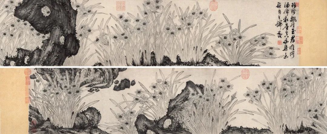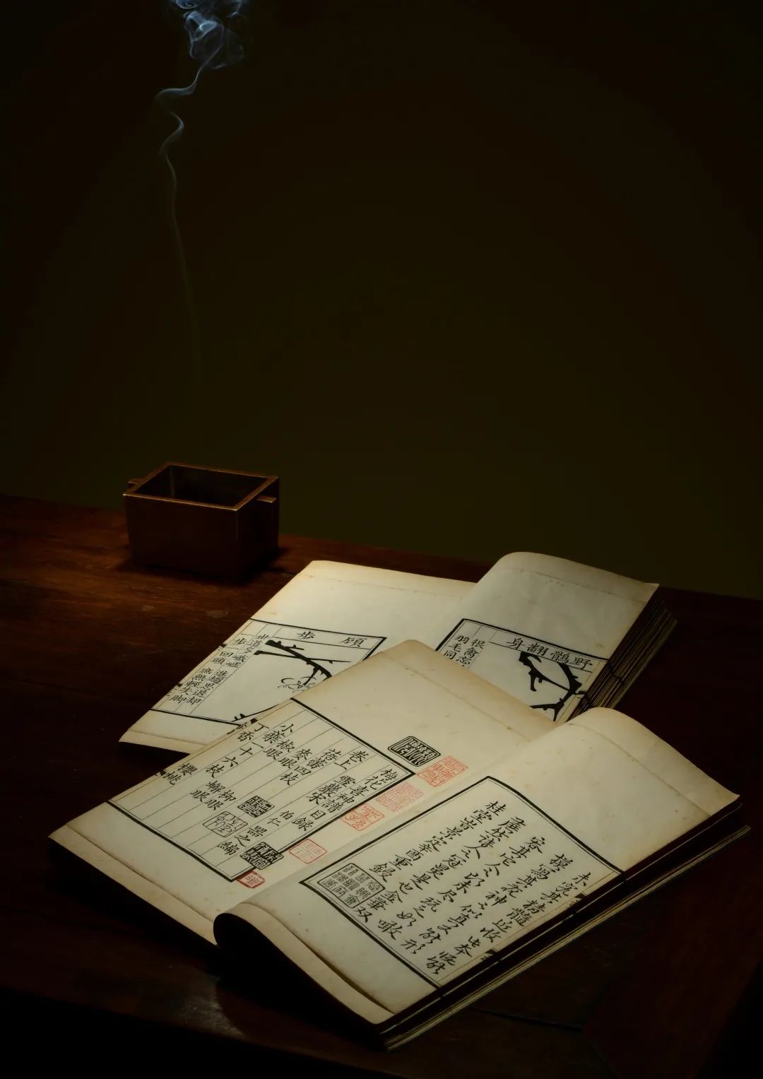 《梅花喜神谱》初刻于宋嘉熙二年,此本现已不见传世。可信的古倪园本《梅花喜神谱》足本仅见于2011年中国书店春季拍卖会,拍品虽下半部分水渍较重,仍以近50万元的价格成交。此次征集到的这部沈氏古倪园本《梅花喜神谱》纸张为开化纸,洁白细腻不见帘纹,版面图谱清晰灵动、文字锋芒毕现,与文献记载“桃花纸初印本”的特征相符,确为古倪园极初印本。更为难得的是,此本经云轮阁缪荃孙、积学斋徐乃昌、式训堂章硕卿、碧双楼吕贞白、来燕榭黄裳等著名藏书家递藏。