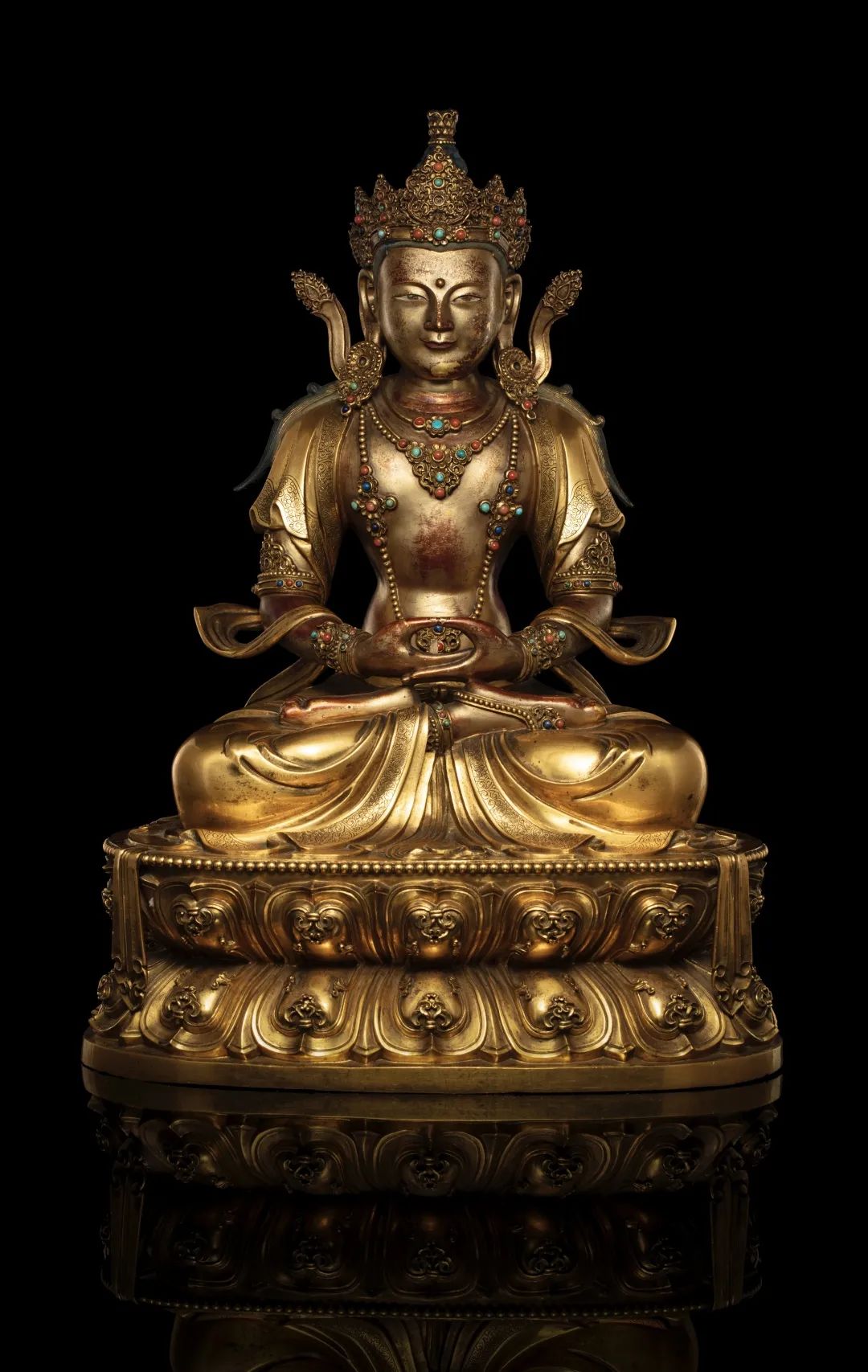 关羽在中国民间是忠义的化身,也是佛教与道教共同尊奉的神祗。这套组像工艺精良,权衡合度,采用分体铸造的方式,再插接而成,浑然天成。人物形象和姿态生动自然,将关公勇猛无敌的气势表现得淋漓尽致, 具有极高 的艺术水平。此类组像存世极少,类似组像北京匡时2006年秋拍曾拍出一例,成交价649万元;另见一例北京印千山2016年十周年春拍,成交价295.1万元。