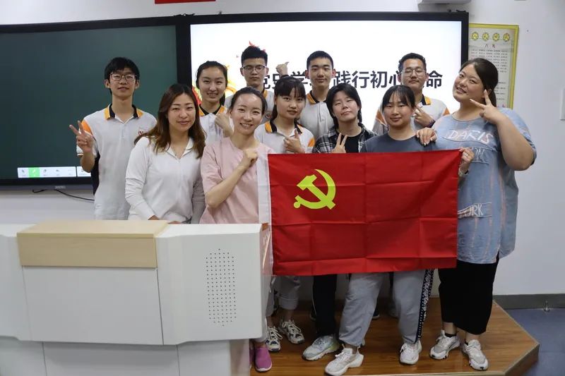 吴斐(白衬衫)和毕业班的学生们一起合影。