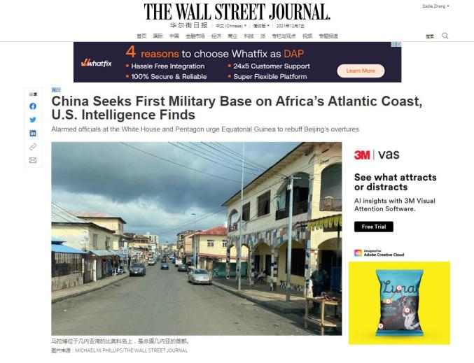 据《华尔街日报》报道,美国情报机构“2019年开始捕捉到中国在赤道几内亚军事意图的迹象”,在特朗普执政的最后时期,五角大楼一名高级官员访问该国。