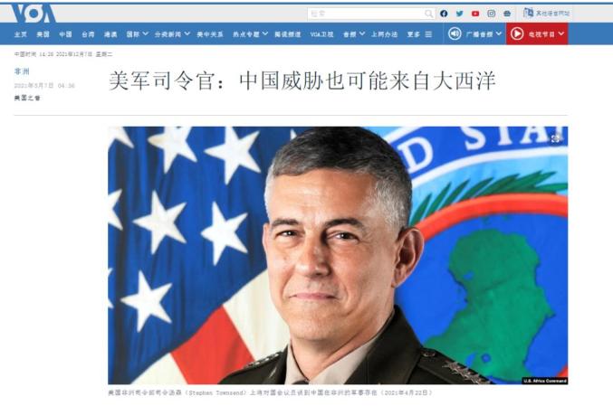 今年4月,美国非洲司令部司令汤森在国会称,来自中国的“最大威胁”将是“非洲大西洋沿岸一个有军事用途的海军设施”。