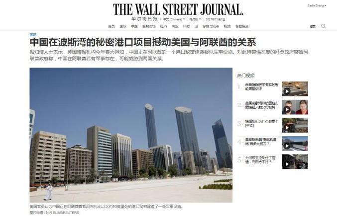 该报11月19日报道称,美情报机构在今年春天发现,中国疑似在阿联酋的哈里发港进行秘密军事基地建设。