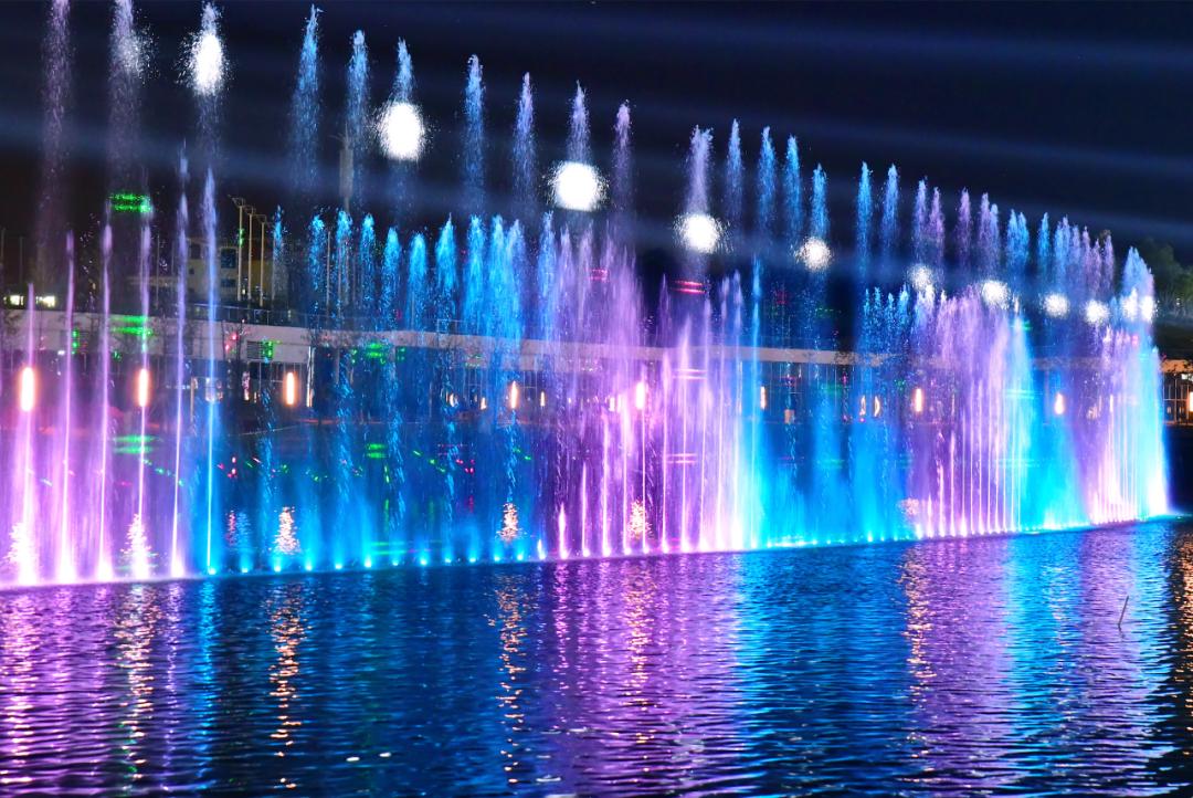 音乐喷泉、闪耀灯光、炫目巨幕……