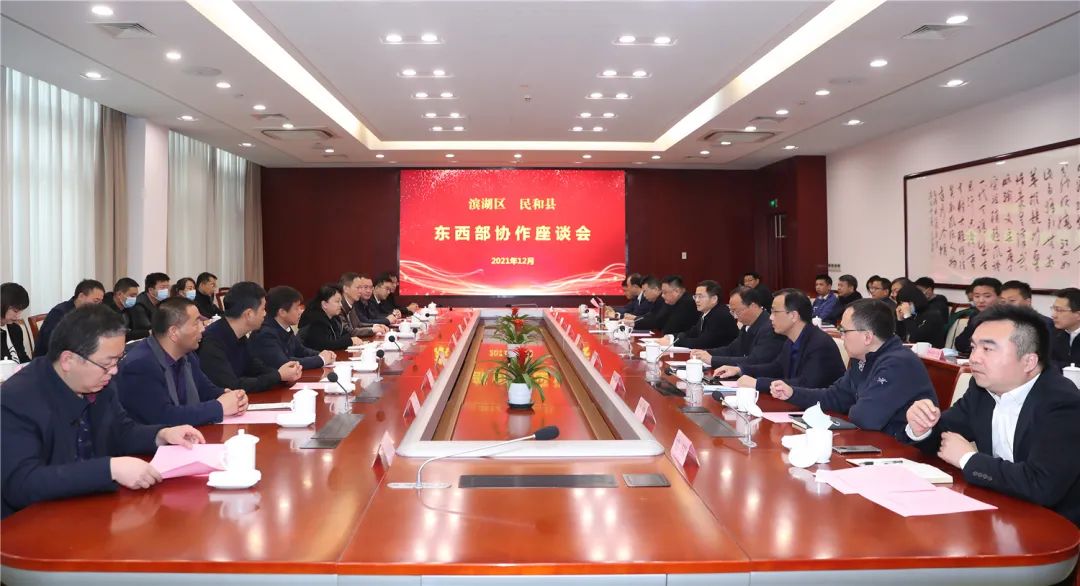 孙海东代表区委、区政府对民和县党政代表团一行的到来表示热烈欢迎,对民和各级领导给予我区援青干部和专技人才在工作生活上的关心支持表示衷心感谢,并简要介绍了滨湖经济社会发展情况。他说,今年以来,滨湖按照市委市政府决策部署,坚持以高质量发展为导向,抢抓长三角区域一体化等重大发展机遇,加快推进太湖湾科创带引领区建设,加速集聚人才资源,产业发展呈现蓬勃态势。孙海东表示,滨湖作为对口协作地区,对民和近年来取得的良好发展态势和脱贫攻坚成效倍感欣喜。希望双方以此次会议为契机,进一步加强经济交往,发挥区域优势,开展精准对接,让滨湖印迹留在民和、烙在民和;进一步密切人员互动,特别是在两地教育方面开展积极探索、深入合作,共享优质教育资源;进一步谋划更有特色、富有新意的活动,吸引多元主体参与,持续扩大两地协作影响力、共创两地协作新成效。