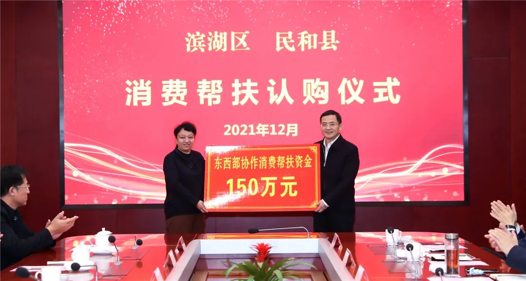 座谈会上,两地举行消费帮扶认购仪式,我区向民和县认购扶贫产品150万元,为民和巩固脱贫成果、推进乡村振兴贡献“滨湖之力”。截至目前,我区今年已累计完成消费帮扶金额超500万元。会议还表彰了江苏省脱贫攻坚暨对口帮扶支援合作先进集体和个人、青海省脱贫攻坚先进集体和个人。