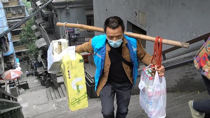 冉光辉送货中。龚浩月 摄闲余时间里冉光辉开始兼职送外卖,第一单,二十斤左右的商品,冉光辉连导航都不用看,十多分钟后,就将商品交到了买家手里。