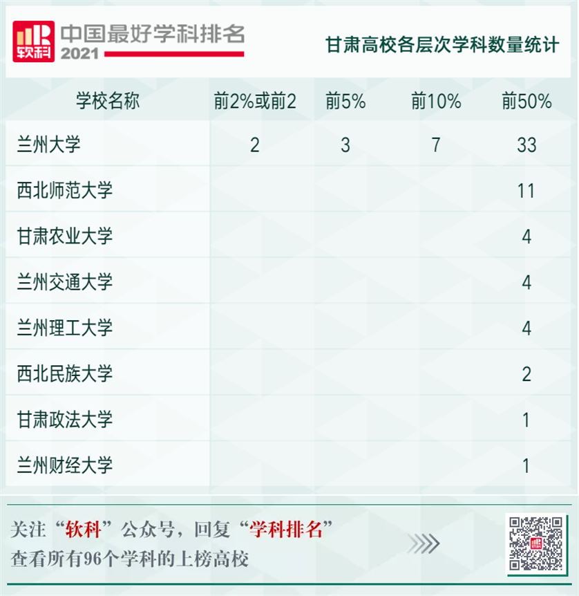 原标题:《2021软科中国最好学科排名:甘肃8所高校上榜》