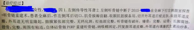 其中,采用自体骨重建操作更为便利、费用也较人工听小骨低廉、并发症少并且听力恢复跟人工听骨一样理想,但是应用自体听小骨对患者耳部条件、手术医生经验要求更高,本文作者最后能使用自体砧骨重建听骨链真的很幸运!