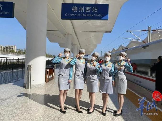 赣深高铁试运营期间,乘务人员在赣州西站合影留念 图/羊城晚报全媒体记者 李志文记者在12306App查询发现,赣州西和深圳北之间每天有11对高铁运行。从赣州西到深圳北的二等座票价从146元到264元不等,其中,上午的票价多为264元,下午和夜间的票价较为便宜;从深圳北到赣州西的二等座票价则从238元到264元不等。