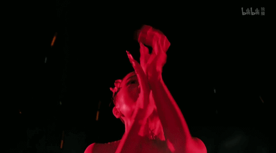然后是杨丽萍编排的舞蹈表演。舞者在灯光下通体发红,宛若一簇火焰。