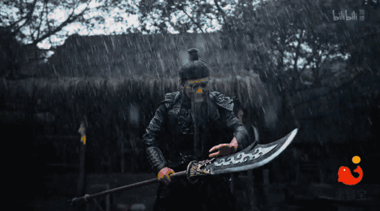 《关公战》中关公持刀雨中独舞时。弹幕齐刷「这电影感绝了」。