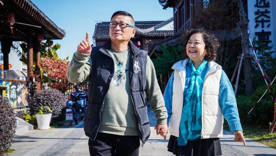 老凌夫妇喜欢菊泉故里的明清仿古式亭台阁楼。走在石板路上,两边白墙黛瓦的明清仿古式建筑错落有致,亭台楼阁、飞檐翘角、绿水环绕,江南水乡气蕴丰裕,与市区的高楼大厦形成鲜明对比。除了特色建筑,如今的老街格外热闹,汇聚了雷允上、国酒茅台文化体验中心、五粮液酒文化体验馆、故里名灶、吴记羊肉、涟香阁、漫猫咖啡店、摩可可咖啡店、兰逸阁国粹艺术中心等各种品牌,逛逛吃吃喝喝,不亦快哉。这些年,南派鸟笼制作技艺、古琴斫制技艺、根雕技艺、绒绣技艺等四家上海市非物质文化遗产工作室相继入驻街上的淘宝楼,还在这里开办了非遗学苑。各类精彩有趣的沪上非遗手工技艺学习班,更让菊泉街多了几分历史文化气息,老两口也都很有兴趣参加。