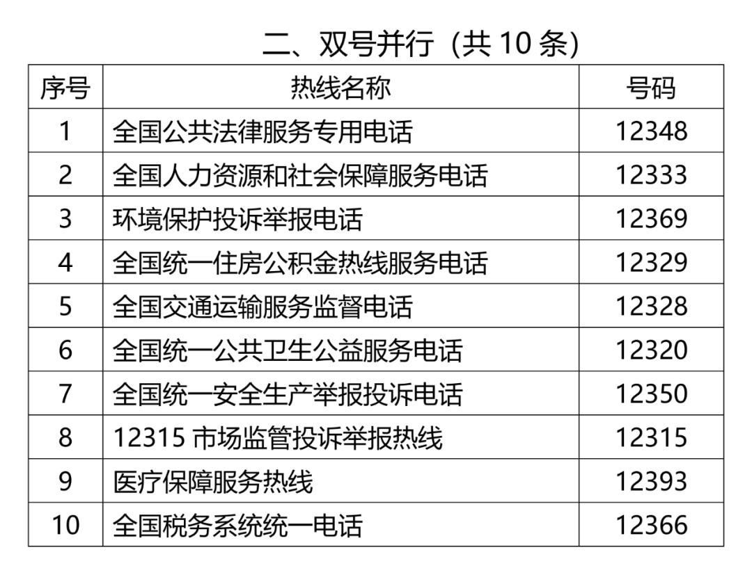 双号并行对国务院有关部门设立并在泰州接听的话务量大、社会知晓度高的政务服务便民热线,按照省统一部署要求进行归并优化,保留号码,与12345双号并行,话务座席并入市级12345热线统一服务、统一管理。