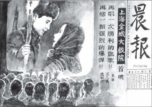 1935年5月24日,《风云儿女》在被誉为“国片之宫”的上海金城大戏院首映。当日的《晨报》电影宣传广告上写着:“再唱一次胜利的凯歌!再掷一颗强烈的爆弹!”作为影片的主题歌,《义勇军进行曲》代表中华民族从心底发出的“最后吼声”在上海唱响。