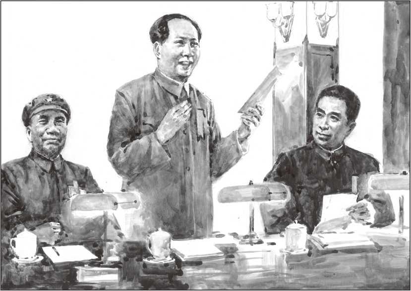 有委员提议用《义勇军进行曲》暂代国歌,但也有人对“中华民族到了最危险的时候”这句歌词提出异议。1949年9月25日,毛泽东、周恩来在丰泽园召开座谈会,专题讨论国旗、国歌、国徽等问题。毛泽东表示保留原歌词具有安不忘危的意义,与会者一致赞同。