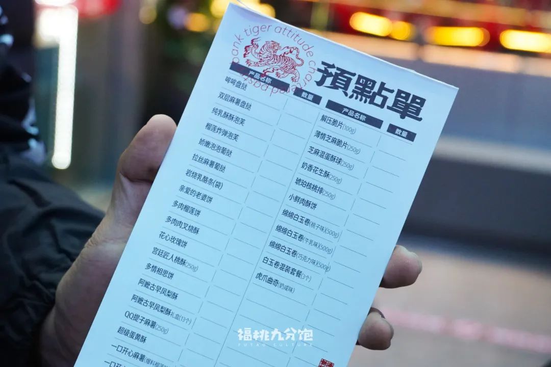 饱妹观察买到手的顾客,基本都是一大袋子起步,两大袋子是标配,颇有置办年货的气势。饱妹点完单的时间是10:51,店门外开始使用S型通道进行排队,除了菜单外,还有店员在队列中分发“预点单”和为顾客提供建议,节省在点单处的时间。