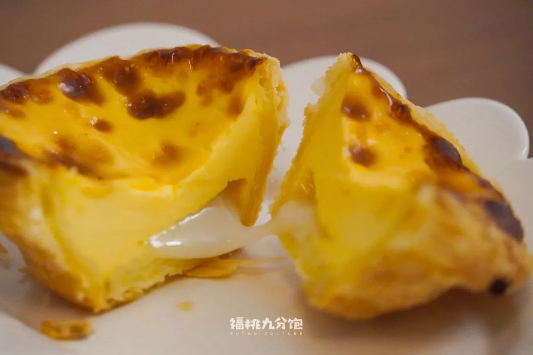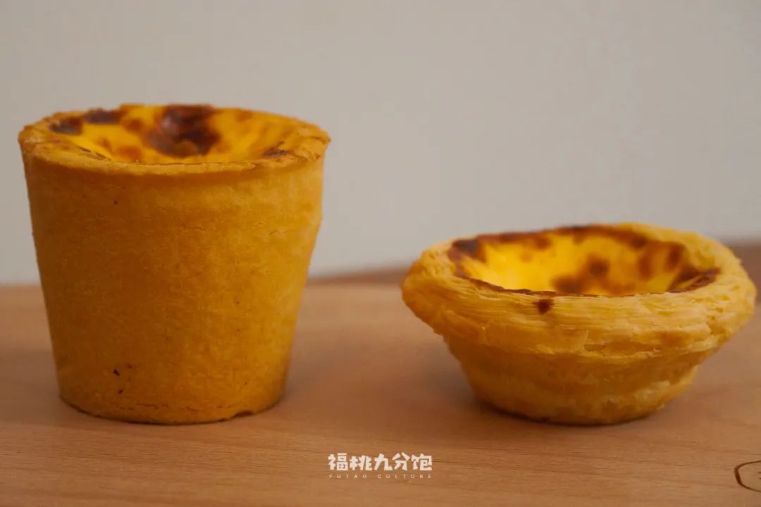 拉丝麻薯葡挞和拉丝麻薯盘挞中葡挞的挞皮层次更多,盘挞的挞皮则更像黄油曲奇的酥松质地。