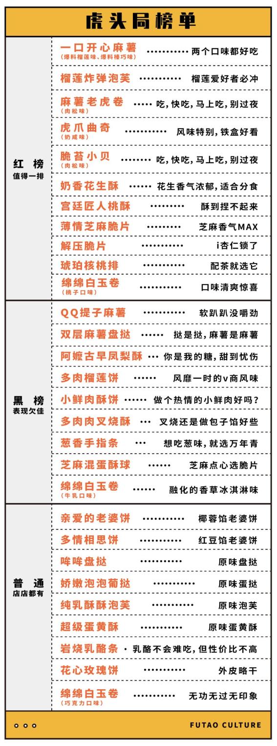 最后为大家送上一份福桃编辑部整理吃出来的虎头局红黑榜。