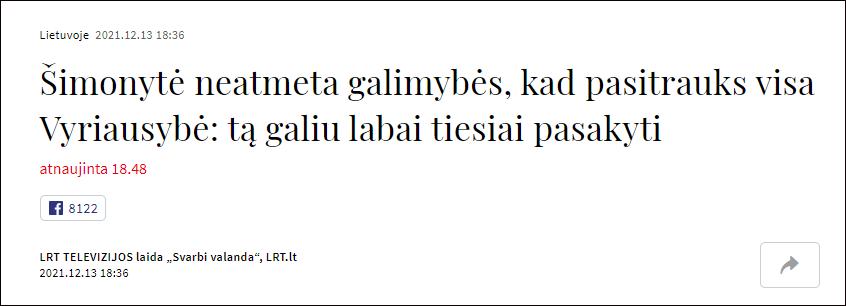 据LRT报道,希莫尼特是在13日晚接受《今日总理》节目采访时发表的上述言论。