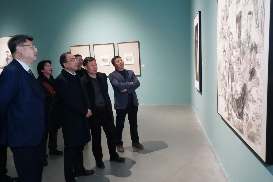 开幕当日下午,陕西省文旅厅高阳厅长一行来到美术馆参观了展览,陕西国画院副院长张华、王潇、乔建业等陪同参观。高阳仔细观看了所有展出作品,并与在场参展画家进行深入交流,认真听取画家讲述作品背后的创作理念与表现手法等。
