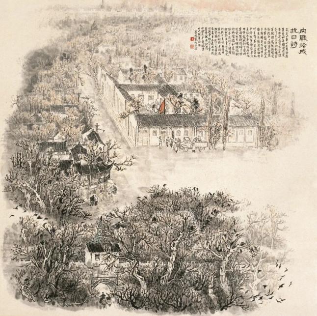 崔振宽 《内战吟成抗日诗》 纸本设色