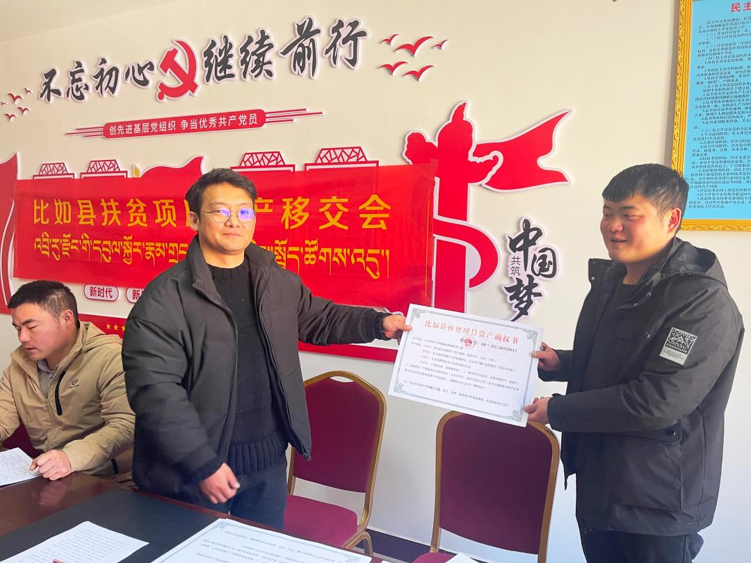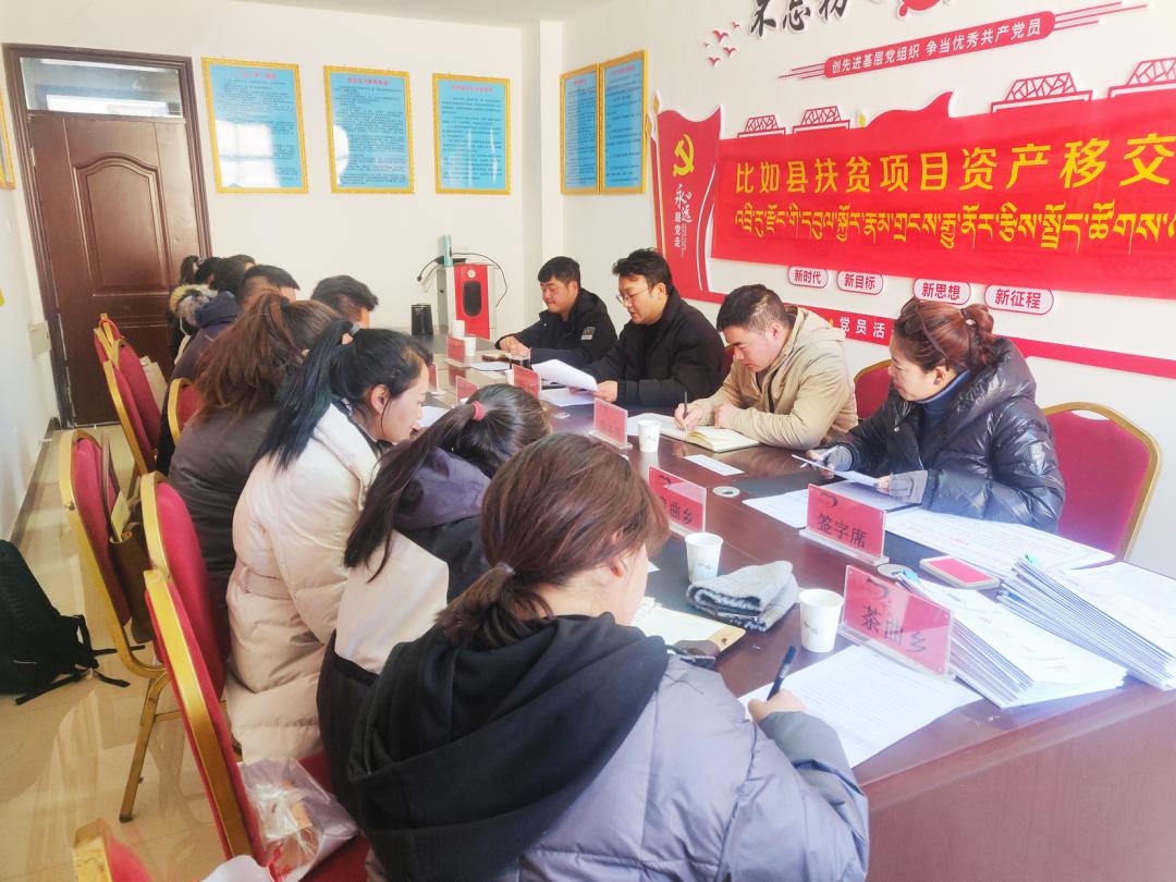 会议传达学习了西藏自治区人民政府办公厅转发的《关于加强扶贫项目资产后续管理工作的实施意见》和《比如县“十三五”期间扶贫产业项目资产所有权、管理权移交责任书》《比如县扶贫项目资产管理制度》等相关文件精神。对清理移交确权的资产,明确产权归属,实行“一项一档一账”管理,避免权属不清晰和产权纠纷,完成了12个扶贫产业项目确权移交工作,涉及8个乡镇和2家县直单位,并与各乡镇、各单位签订了扶贫产业项目资产所有权、管理权移交责任书,发放了确权证书。