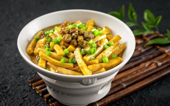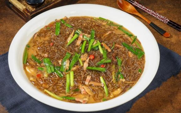 沙蒜豆面本身是家常菜,因为沙蒜广受欢迎,价格水涨船高,现在已经渐渐变成一盘三位数的宴席菜了。但沙蒜豆面能那么受欢迎,当然还是因为它好吃啊,豆面吸饱了沙蒜味的汤汁,鲜香浓郁,很多人甚至专门为了这道菜跑一趟台州。