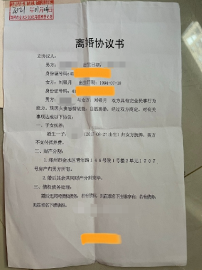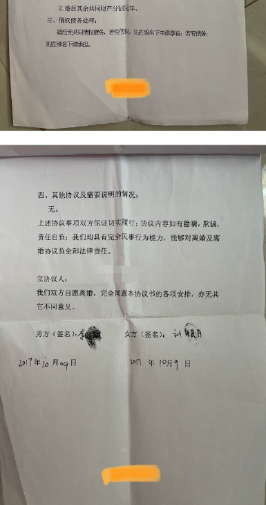 (被替换前的离婚协议)