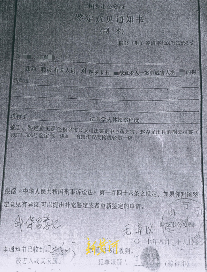 洪芳珍在桐乡市公安鉴定通知书上签字“我保留意见”