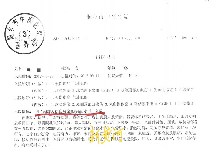 13岁女孩被17岁邻居割伤脖颈,家属称4年后才拿到病历,准备提起民事诉讼