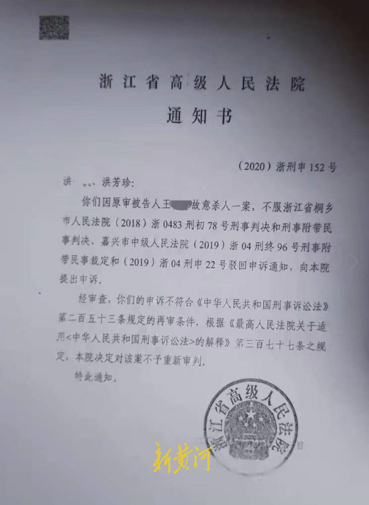 洪芳珍不服判决结果,向桐乡市人民法院、浙江省嘉兴市中级人民法院、浙江省高级人民法院提起申诉,均被驳回。