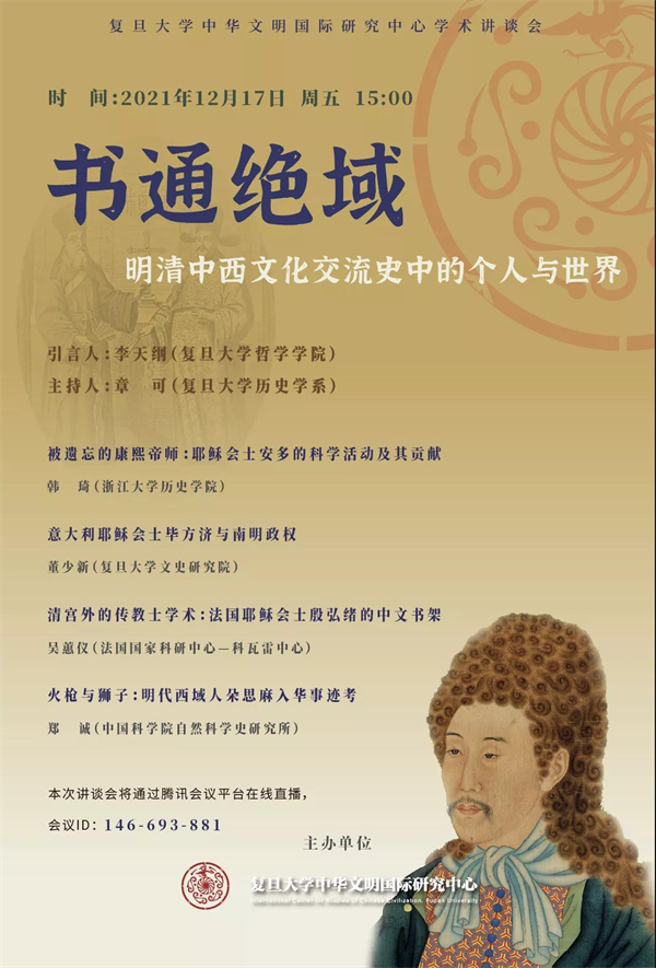 本次中西文化交流史论坛,几位报告人将分别就耶稣会士安多的科学活动及其贡献、意大利耶稣会士毕方济与南明政权、清宫外的传教士学术、明代西域人朵思麻入华事迹考等进行论述。