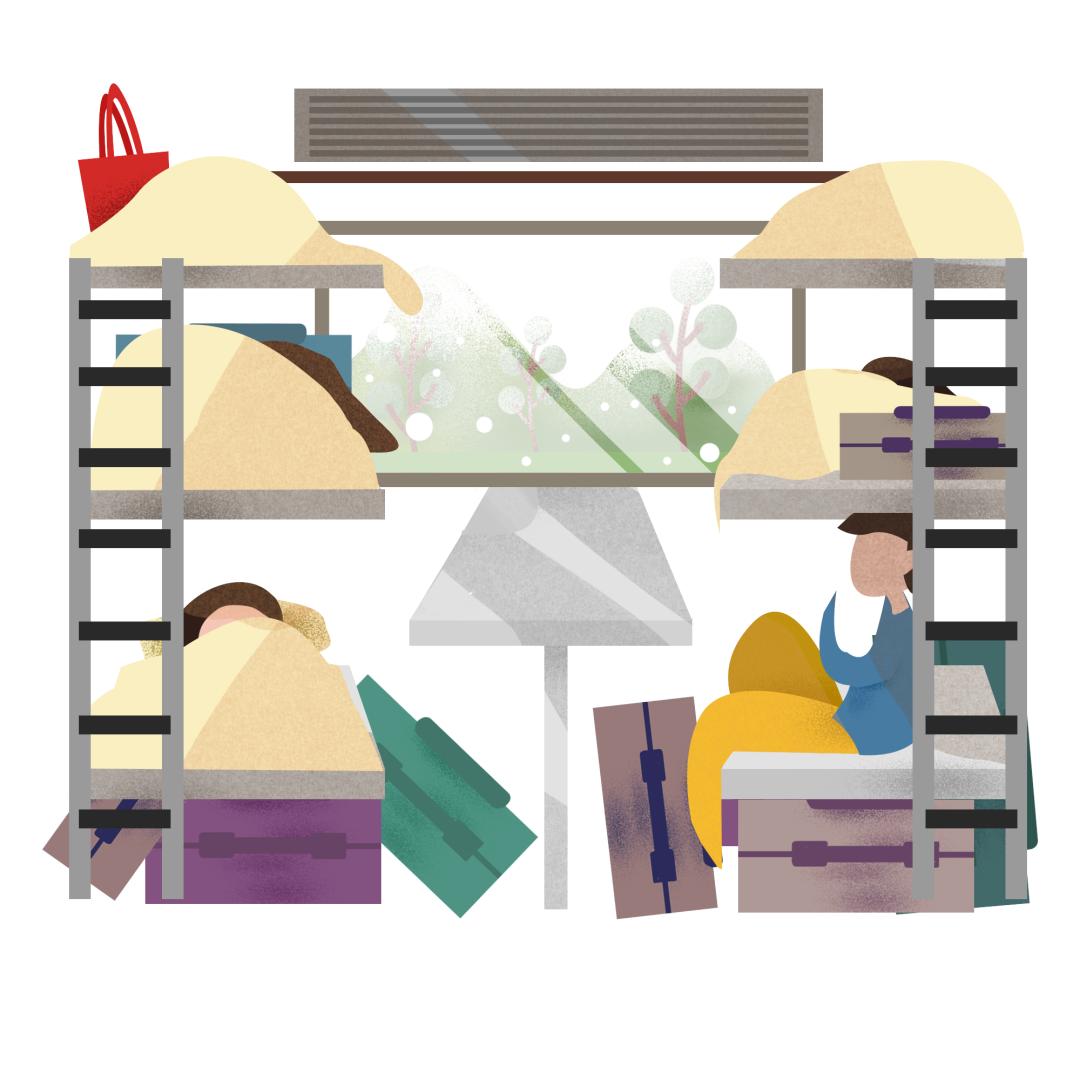 选择仰卧或平躺,有条件的话选择卧铺出行。