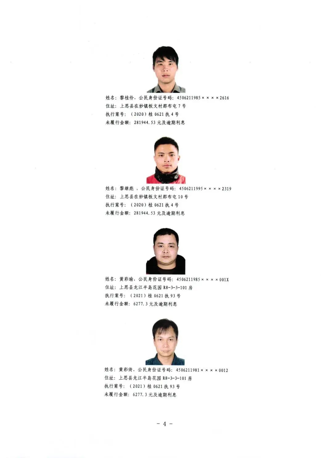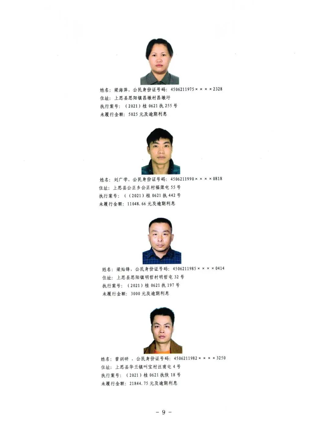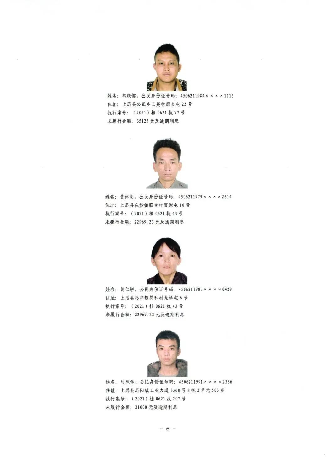 上思县人民法院关于公布失信被执行人名单的公告(第二批)