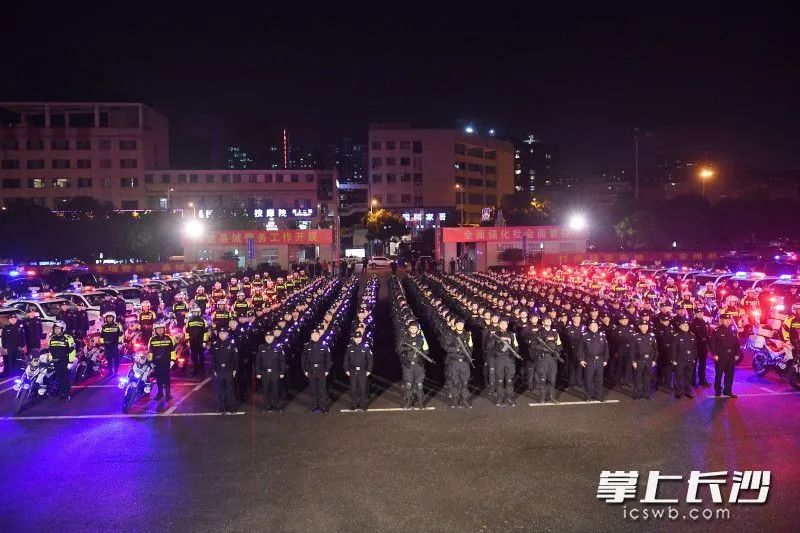 长沙公安民警集结出动,在夜间守护星城。长沙晚报全媒体记者 黄启晴 摄今年12月15日,长沙获评“2017—2020年度平安中国建设示范市”,三捧“长安杯”,连续二十载获评全国平安建设先进,见证着长沙驰而不息、久久为功推进平安长沙建设的奋进历程。