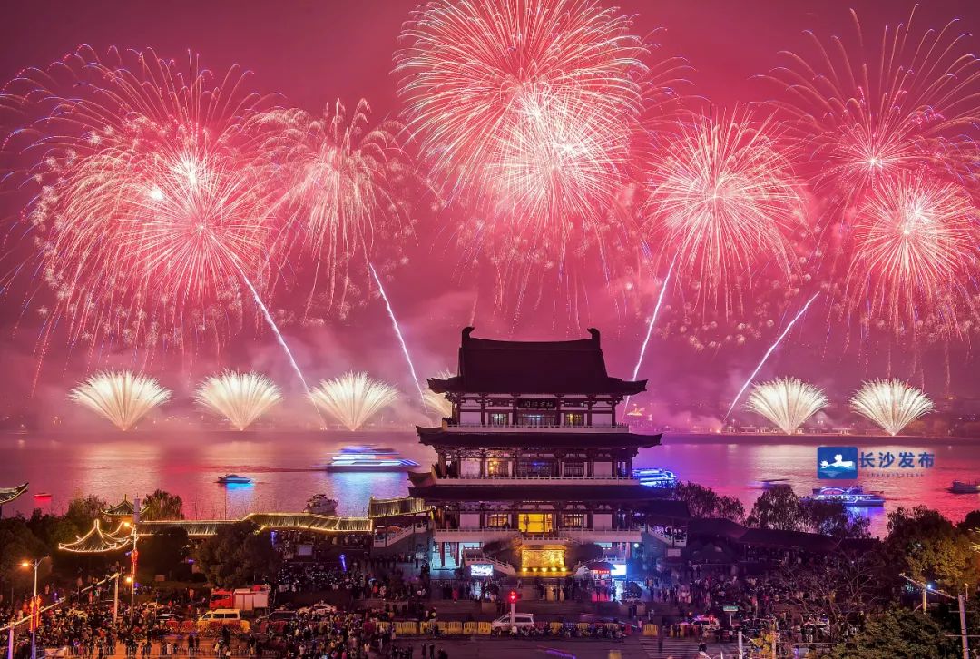 6月30日,数十万市民游客向湘江边汇聚。为庆祝中国共产党成立100周年,当晚,一场盛大的焰火晚会在橘子洲举行。