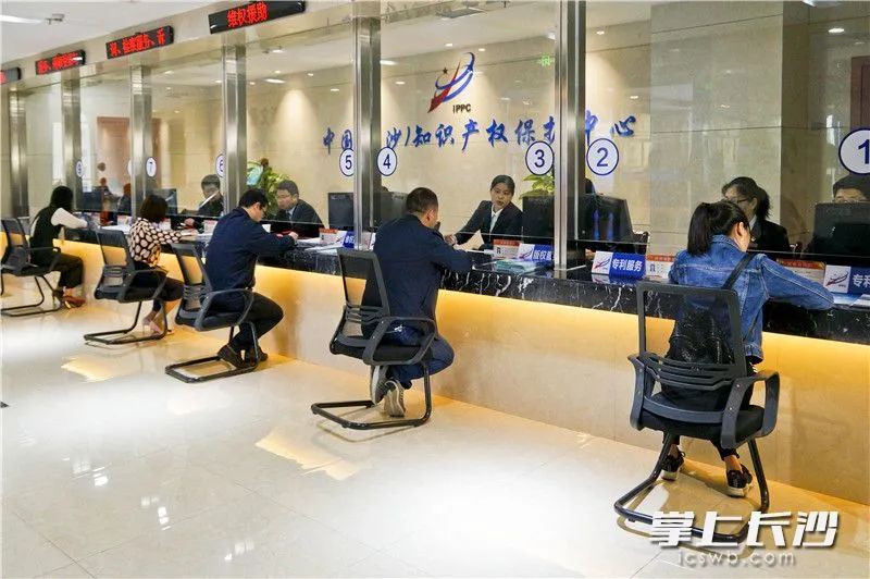 中国(长沙)知识产权保护中心办事大厅里,窗口工作人员为知识产权保护献力。图片由长沙市委政法委提供走进中国(长沙)知识产权保护中心(以下简称“长沙知识产权保护中心”),办事大厅里,多个服务窗口标志醒目、职责明确。