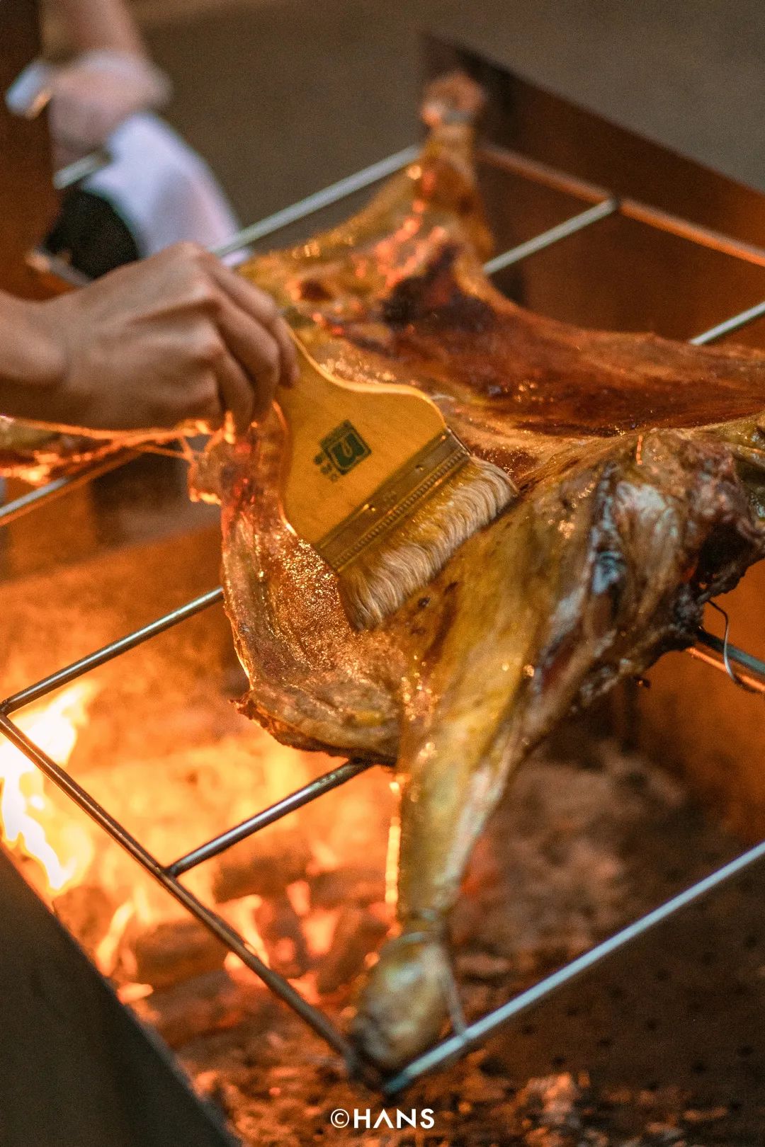 烤全羊唯一的讲究,就是必须要用小绵羊羔,论味道,我觉得是不如把羊分开烤。