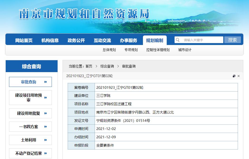近日,南京市规划与自然资源局官方网站,发布三江学院迁建的最新动态,目前工程已经完成全部要素条件的审批。从2015年,这所南京主城的高校,就传出迁建至江宁的消息,6年过去,三江学院终于即将搬迁。