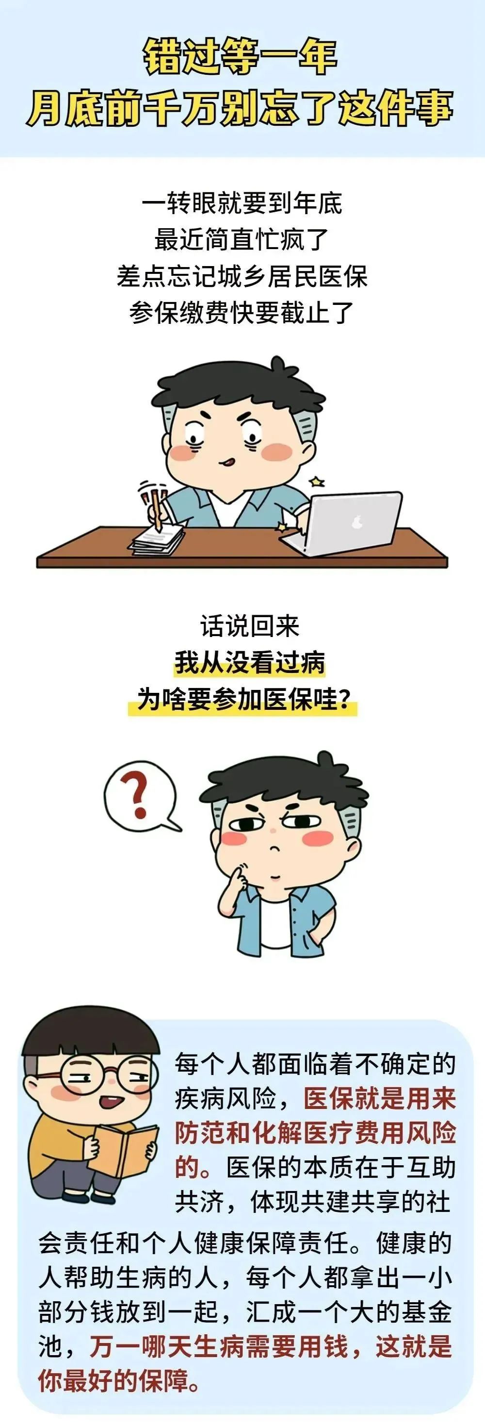 错过时间再缴,可就不是320元了,还要把政府补助的部分一块补缴出来,是不低于900元的!同时2022年度居民医保待遇还要从参保缴费之日起满30日才能享受到,真得很不划算!!